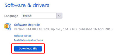 4. في حالة توفر إصدار أحدث في قسم الدعم، يرجى تنزيل الملف وحفظه على جهاز الكمبيوتر. ملاحظة: تحديث البرنامج عادة هو ملف مضغوط، والذي يتطلب استخدام برنامج خاص لفك الضغط (على سبيل المثال WinZip أو WinRar).